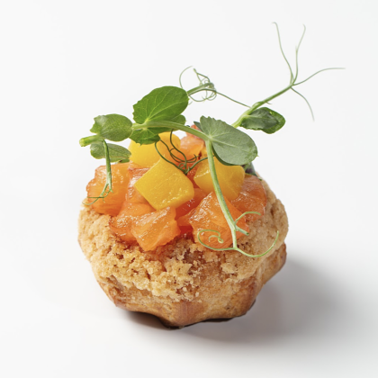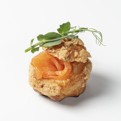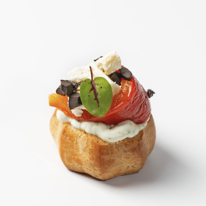 Тигровая креветка, сыр фета и зелень, крем-чиз, заварное тесто
